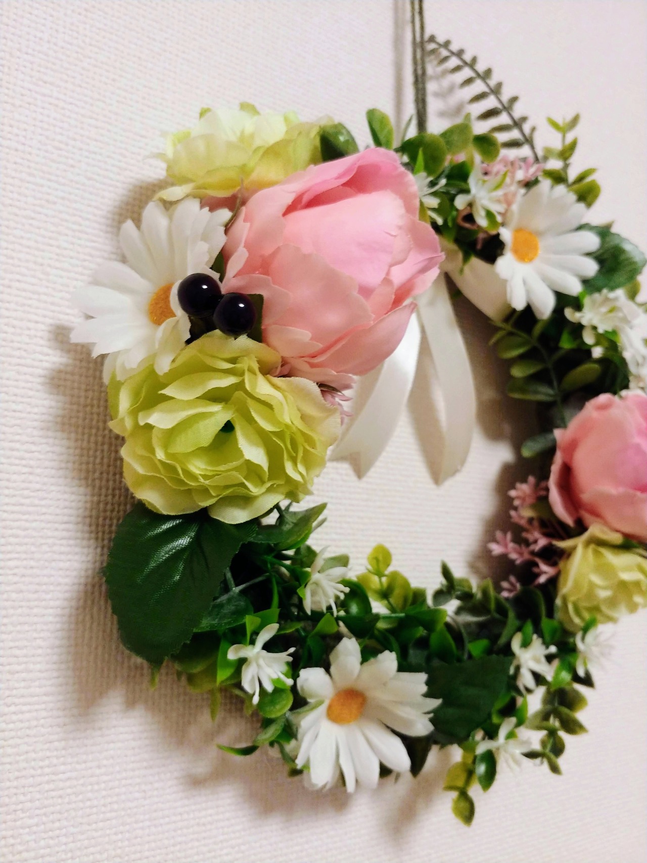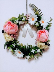 春を待つ、落ち着いた雰囲気のリースです。